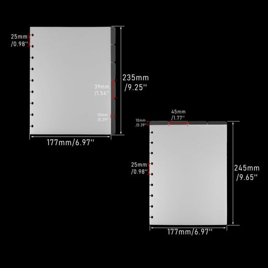 2 Set Discbound Divider 7x9.25'' Plastic 9 Disc Index Dividers Blank Side 6-Tab and Top 4-Tab Planner Inserts 10 Sheets Classic Size Frosted PP Discbound Notebook Dividers