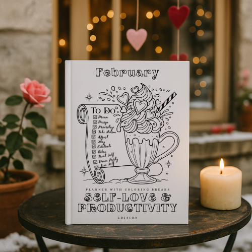 New month, fresh energy. The Monthly Momentum Planner — February Edition is a focused, undated planner that helps you set priorities, block your weeks, track habits, and actually finish what matters. Inside you’ll find monthly and weekly layouts, daily focus prompts, notes pages, and themed coloring breaks that act as quick resets between deep-work blocks. Each Monthly Momentum Planner has its own aesthetic, theme, and special activity pages tailored to the season, plus a QR-linked monthly playlist inside.